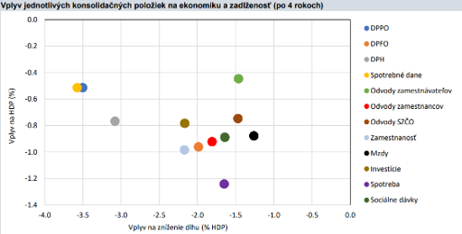 Konsolidácia verejných financií má vždy negatívny dopad na ekonomický rast krajiny, či už prebieha prostredníctvom zvyšovania príjmov štátu, teda vyšších daní, alebo úspor, ktoré znižujú investície štátu, platy jeho zamestnancov či nákupy tovarov a služieb. Všetky tieto opatrenia spravidla spomaľujú ekonomický rast, pričom rozdiel spočíva v tom, do akej miery jednotlivé nástroje ovplyvňujú ekonomickú aktivitu a ako rýchlo sa ich účinok prejaví. Odhady národnej banky naznačujú, že konsolidačné opatrenia plánované na rok 2026 by mohli spomaliť ekonomický rast približne o 0,8 percentuálneho bodu.